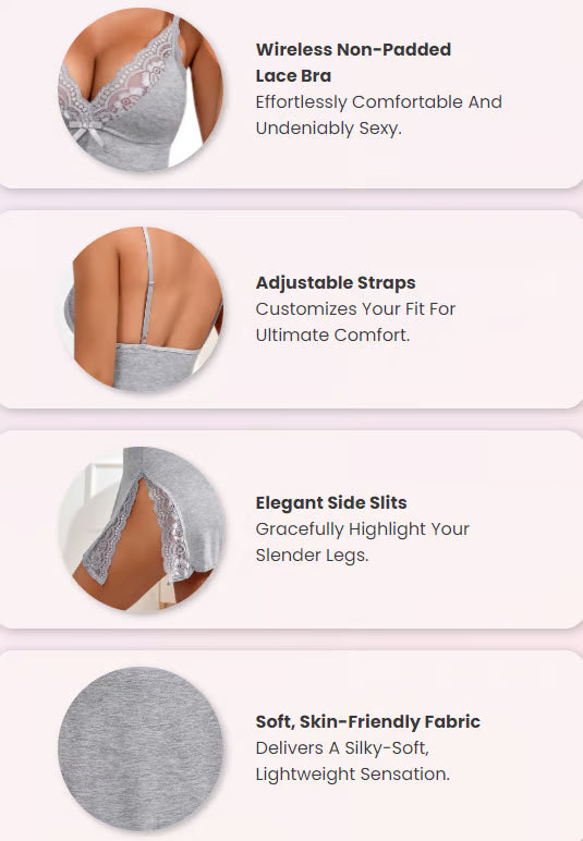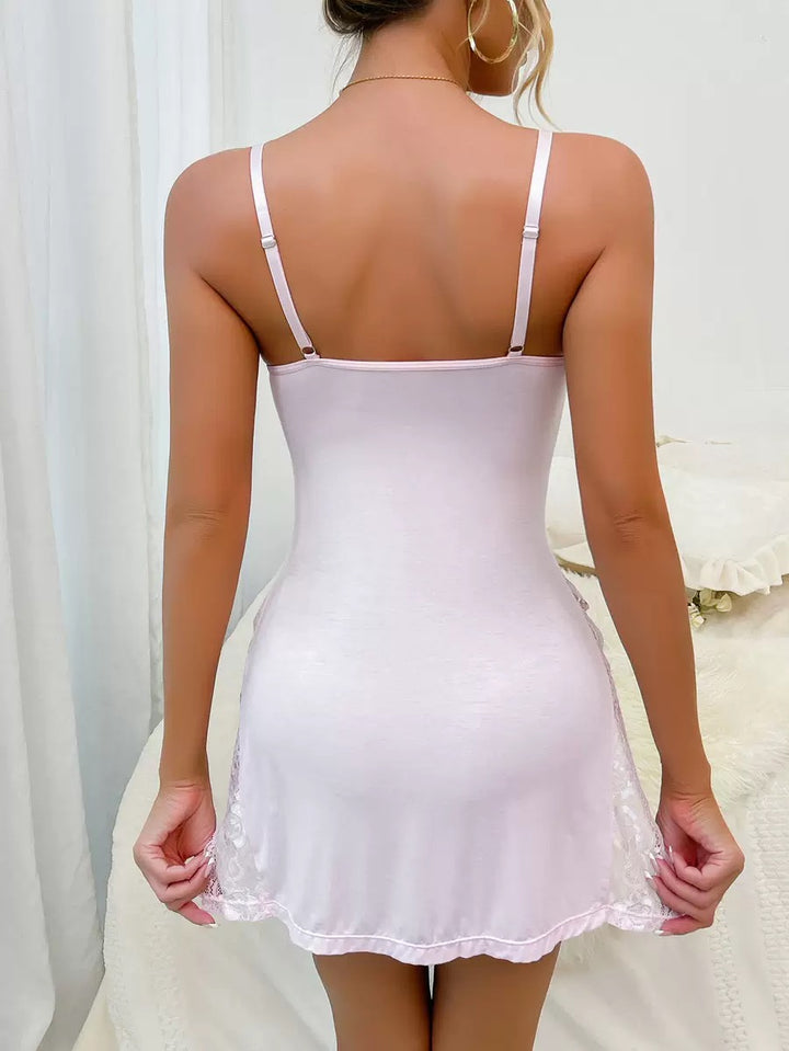 Lace Trim Slit Bowknot Decor Sleep Dress
